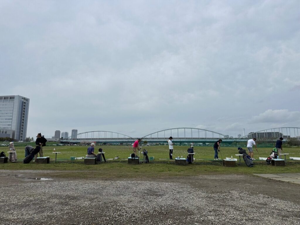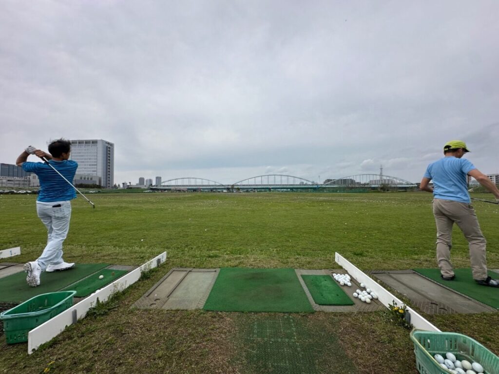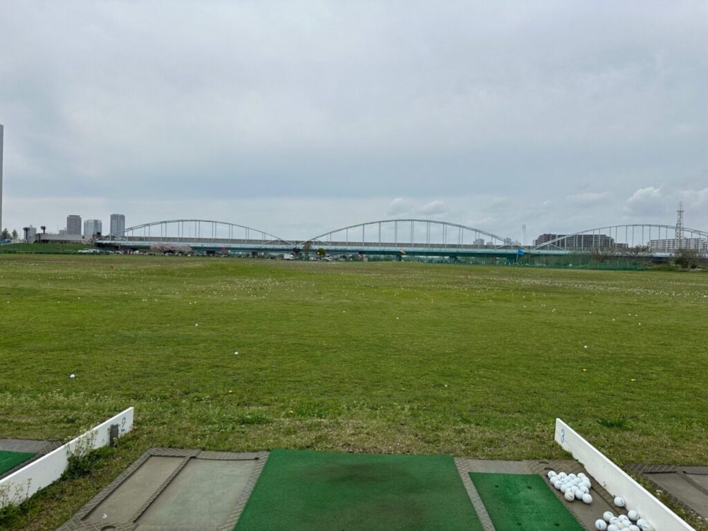 川崎ゴルフ練習場に行ってきました。開放感のある河川敷の大型練習場